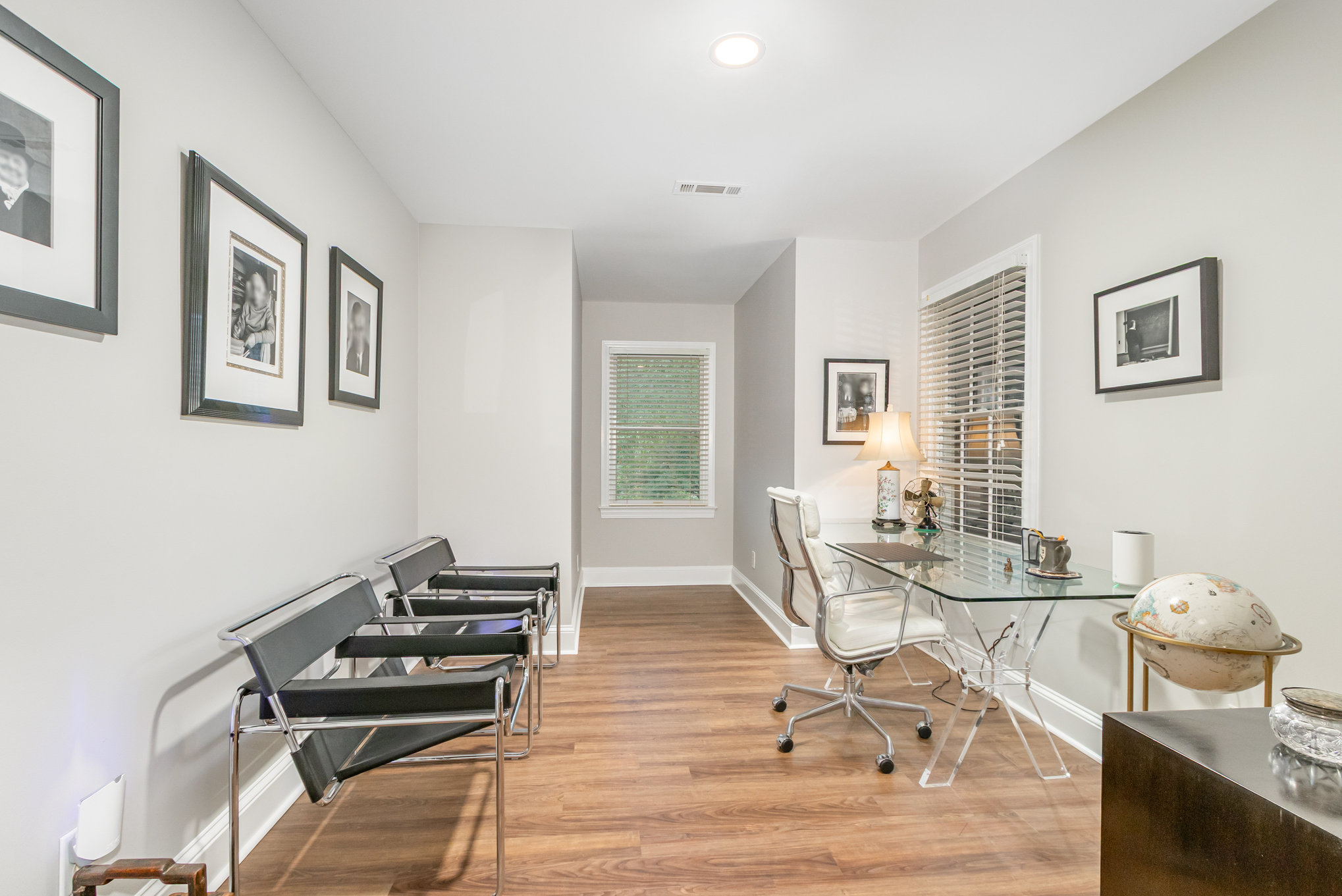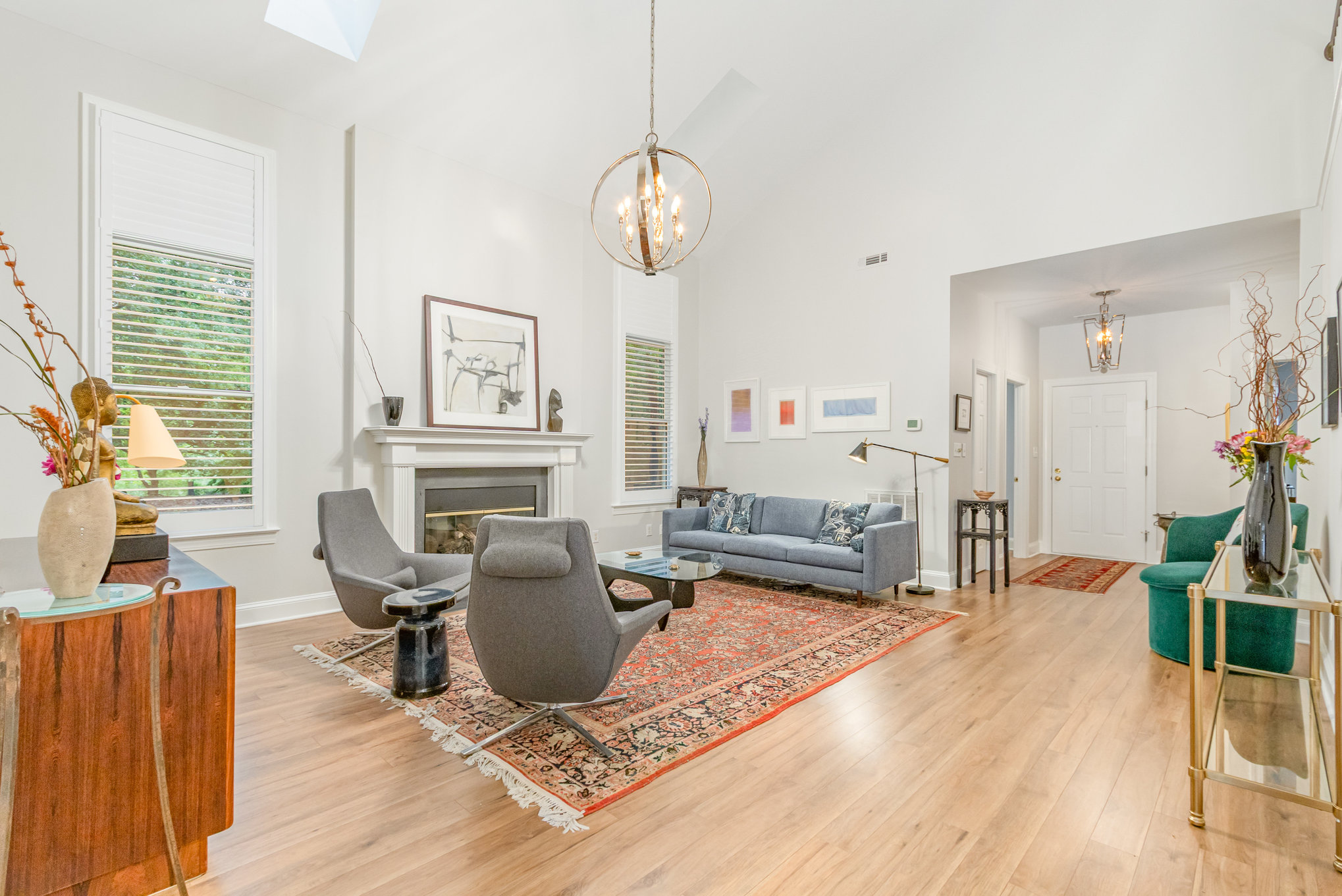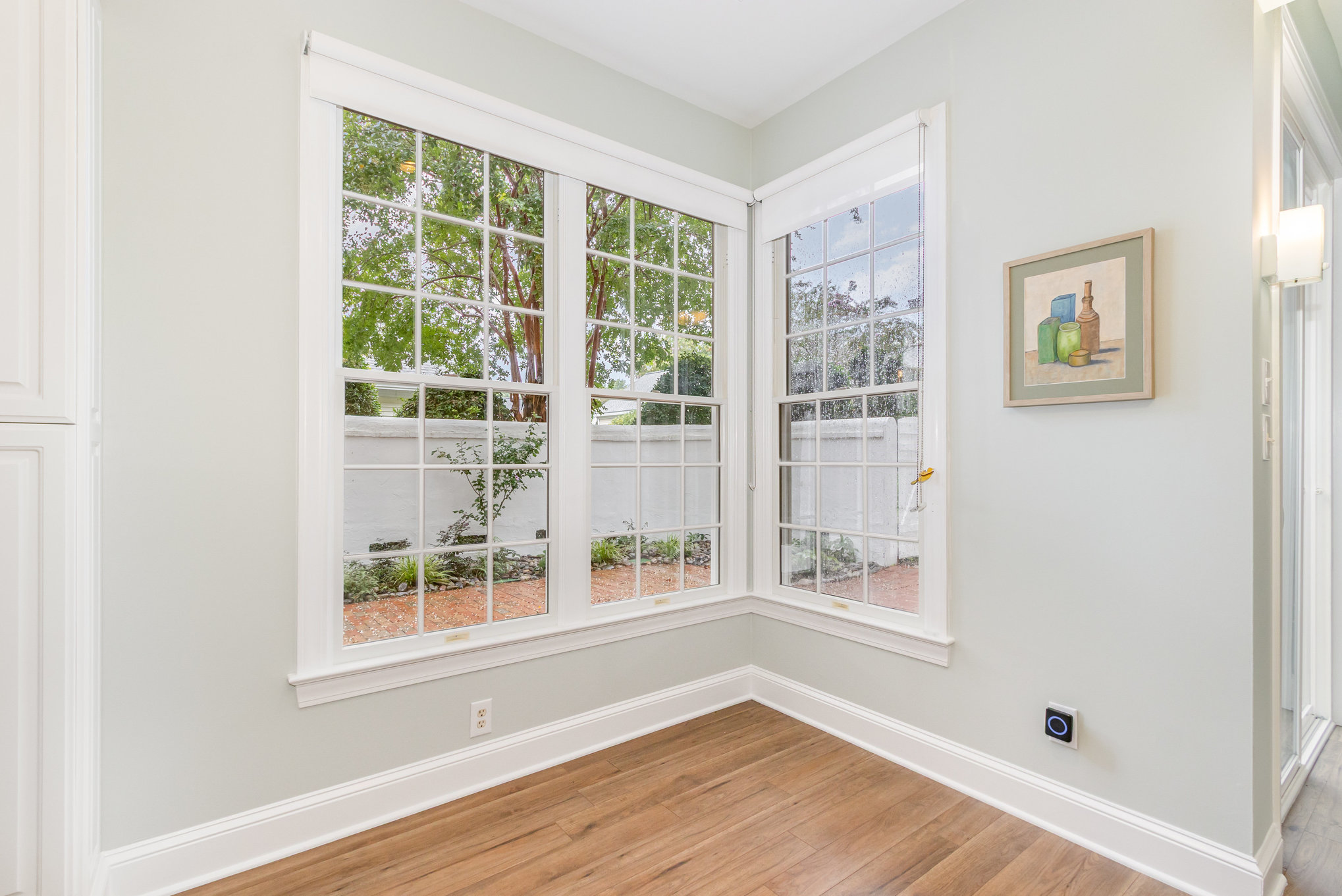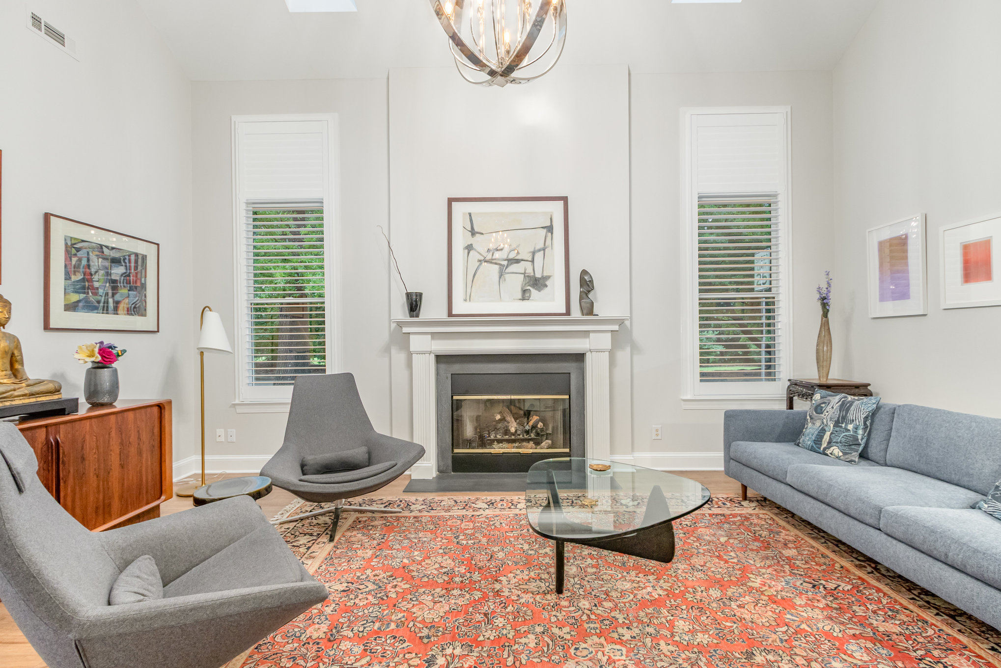 fireplace. Formal dining room with glass door to the private courtyard. Bright