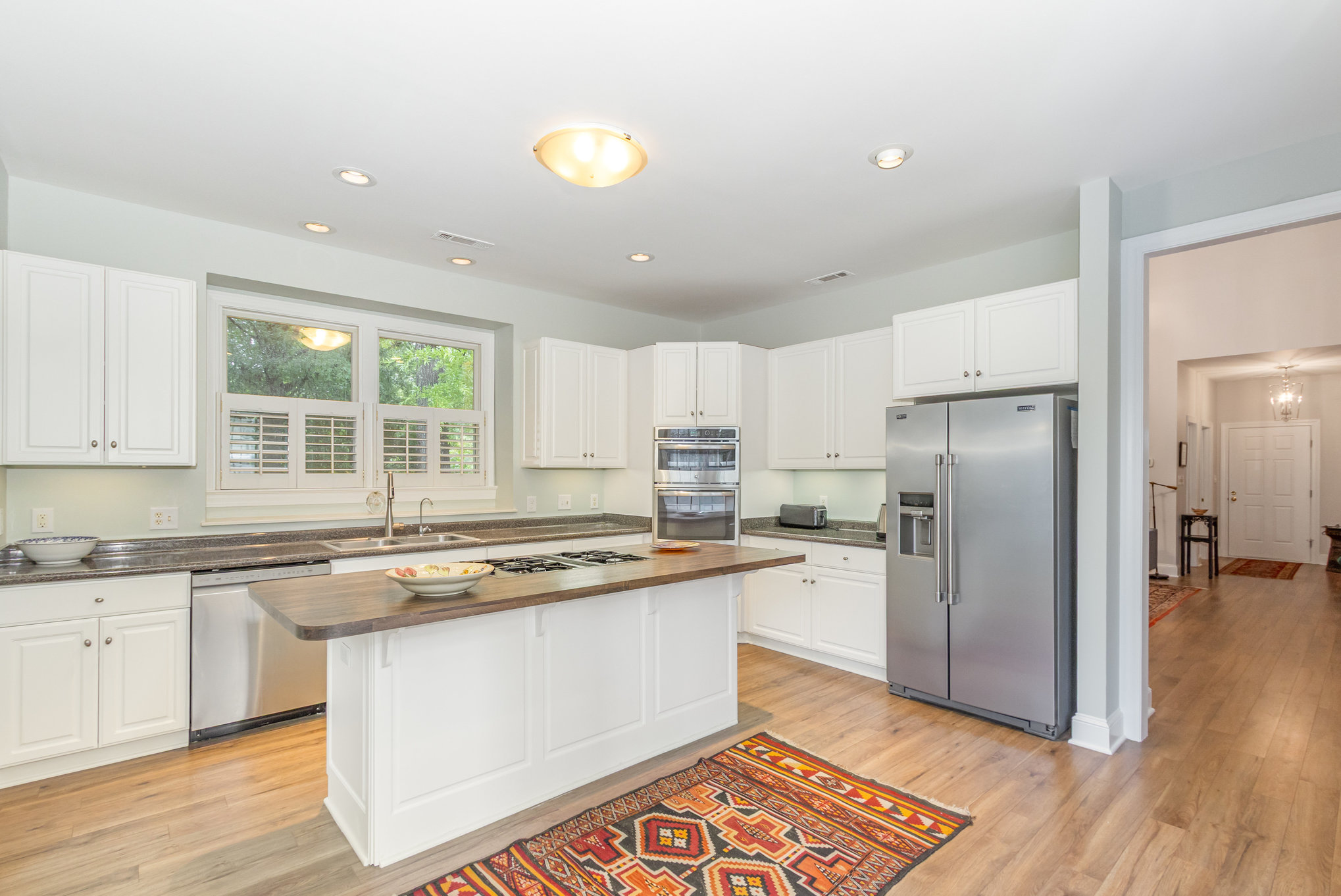 kitchen also opens to the courtyard and features an island and a breakfast or