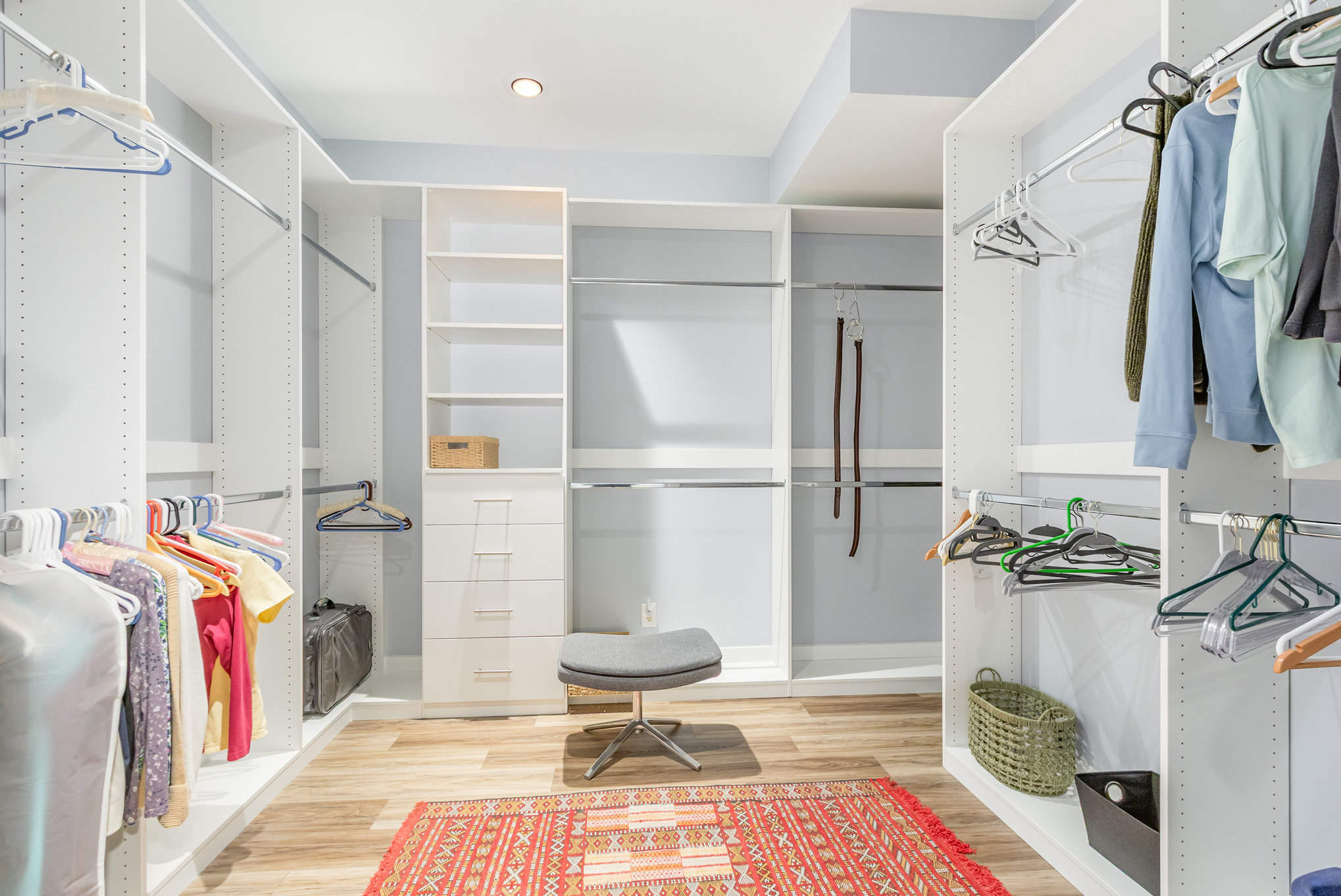 sitting area. Main-level primary suite features a remodeled walk-in closet and