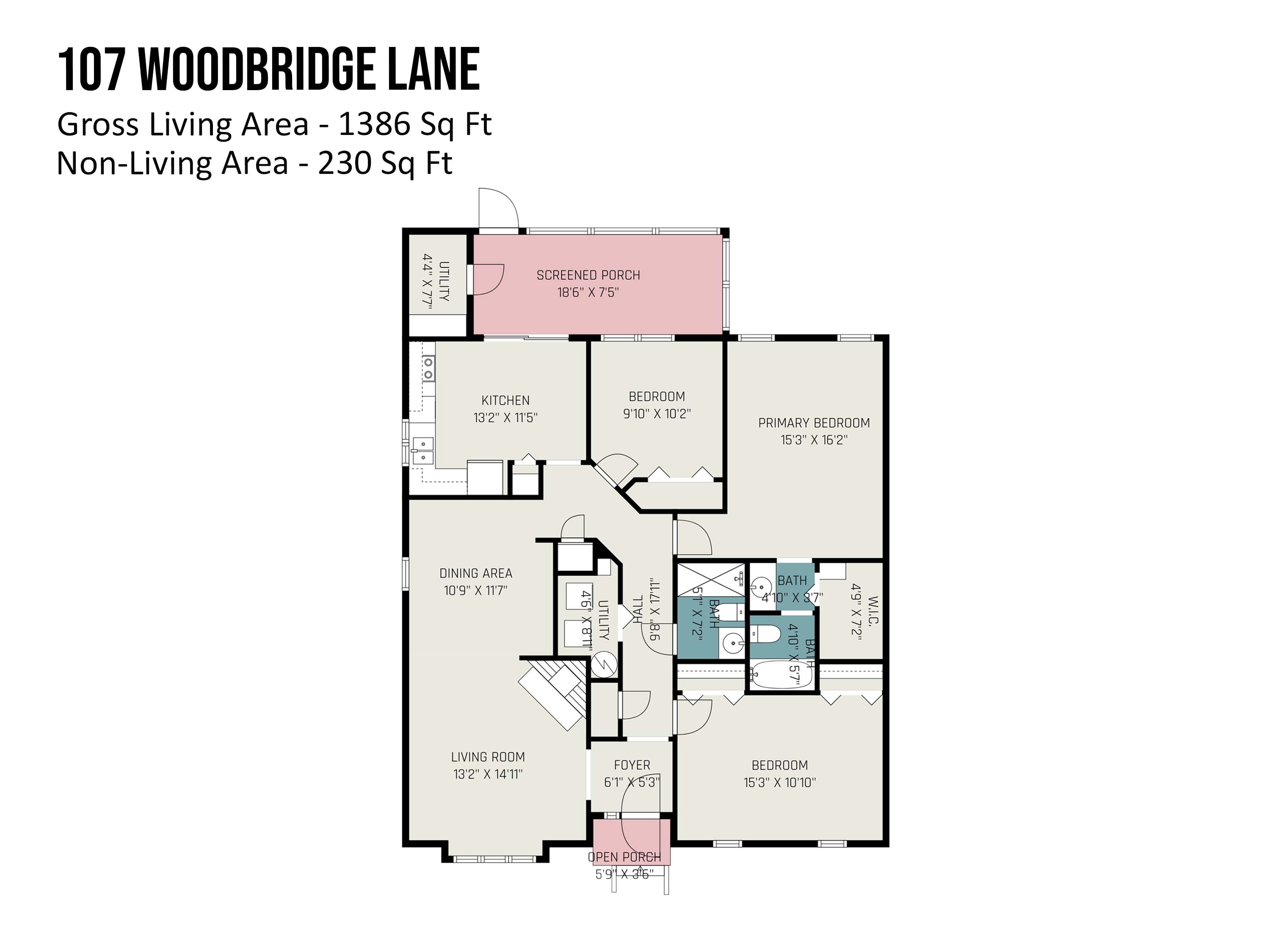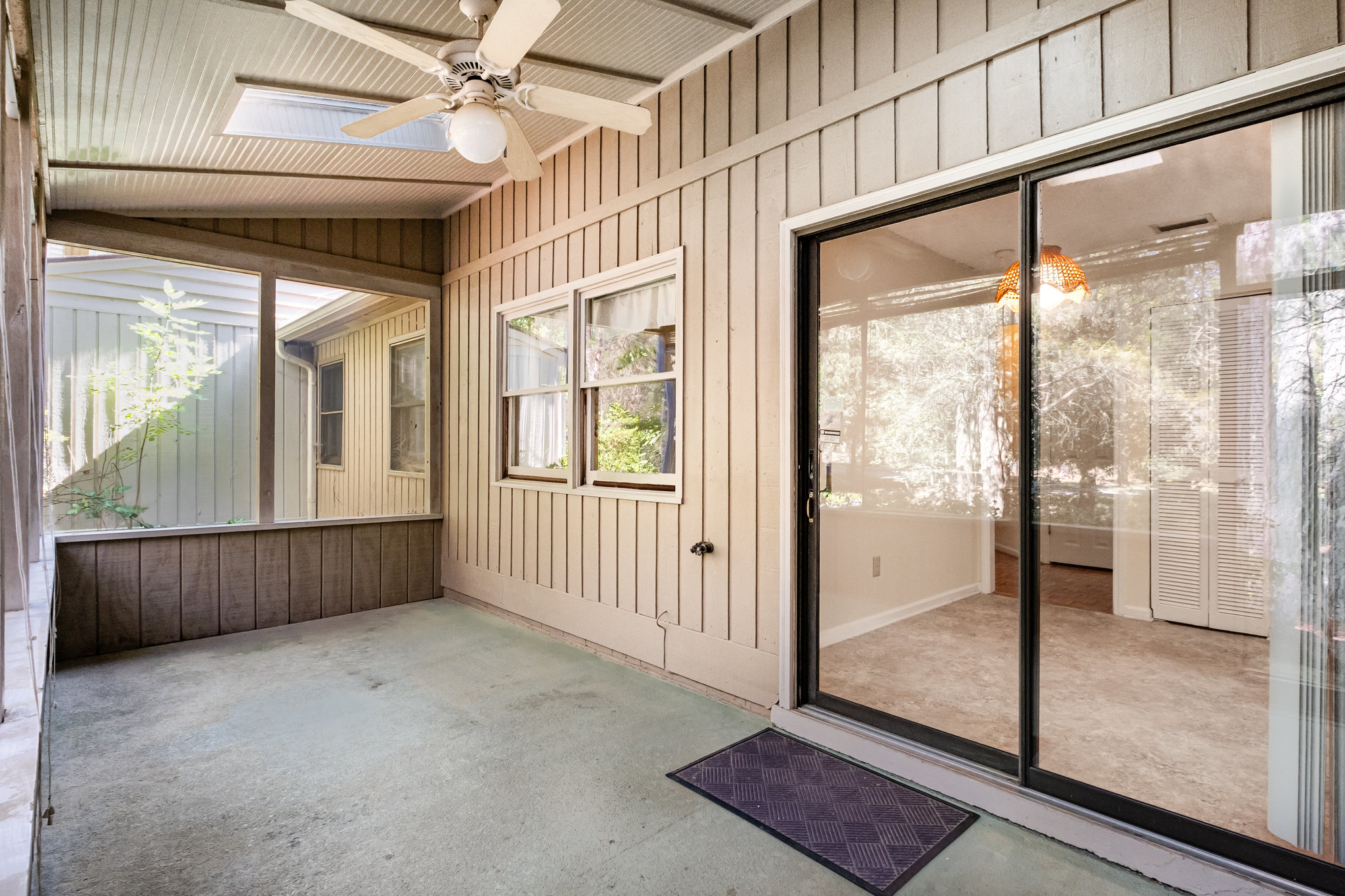 storage closet at one end of the screened porch. The primary bedroom has a walk-in