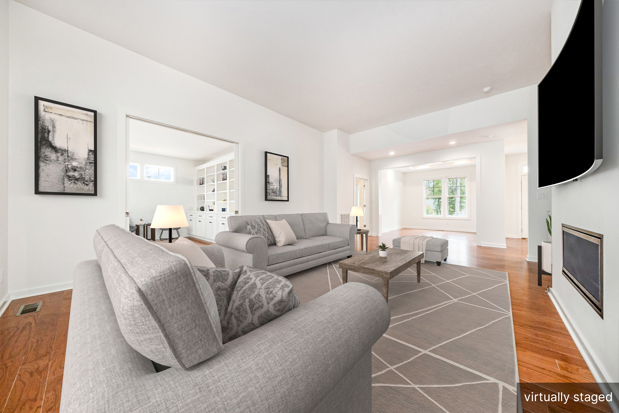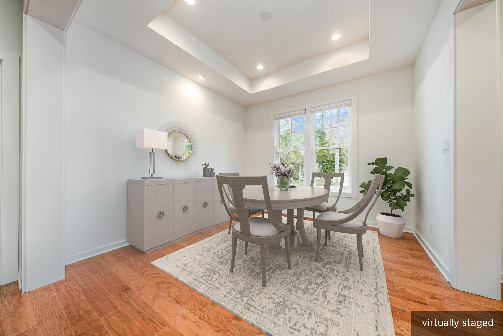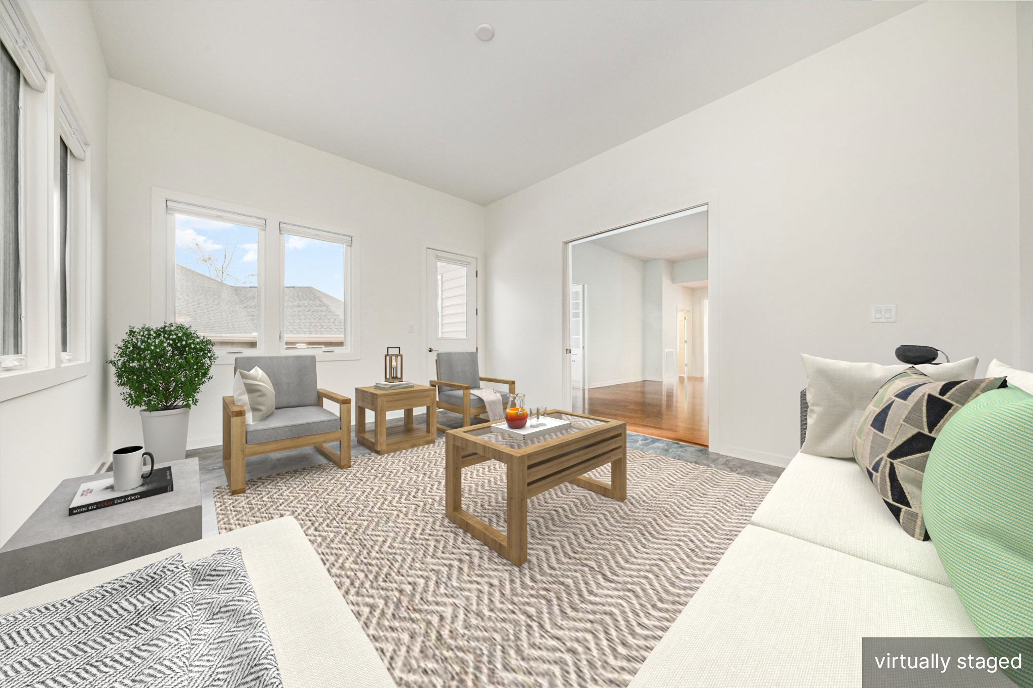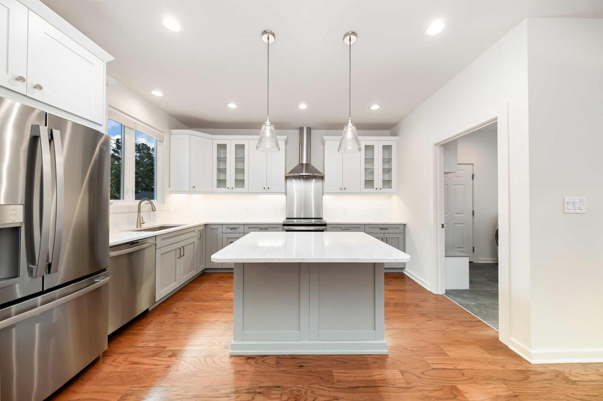 open to a sunroom and an adjoining dining room. The kitchen has soft-close