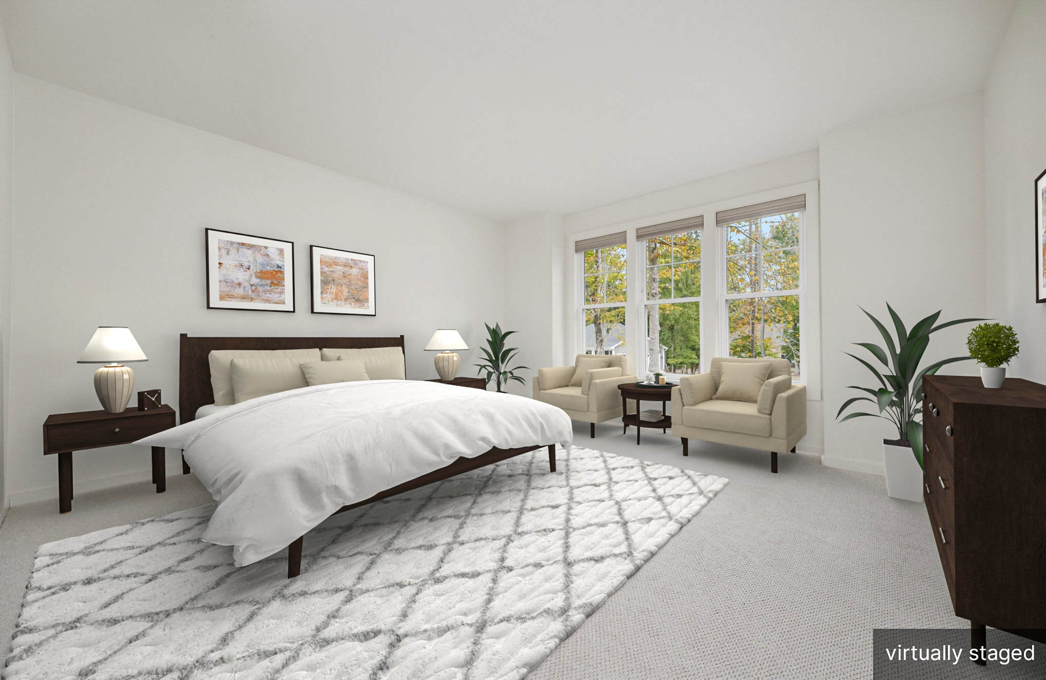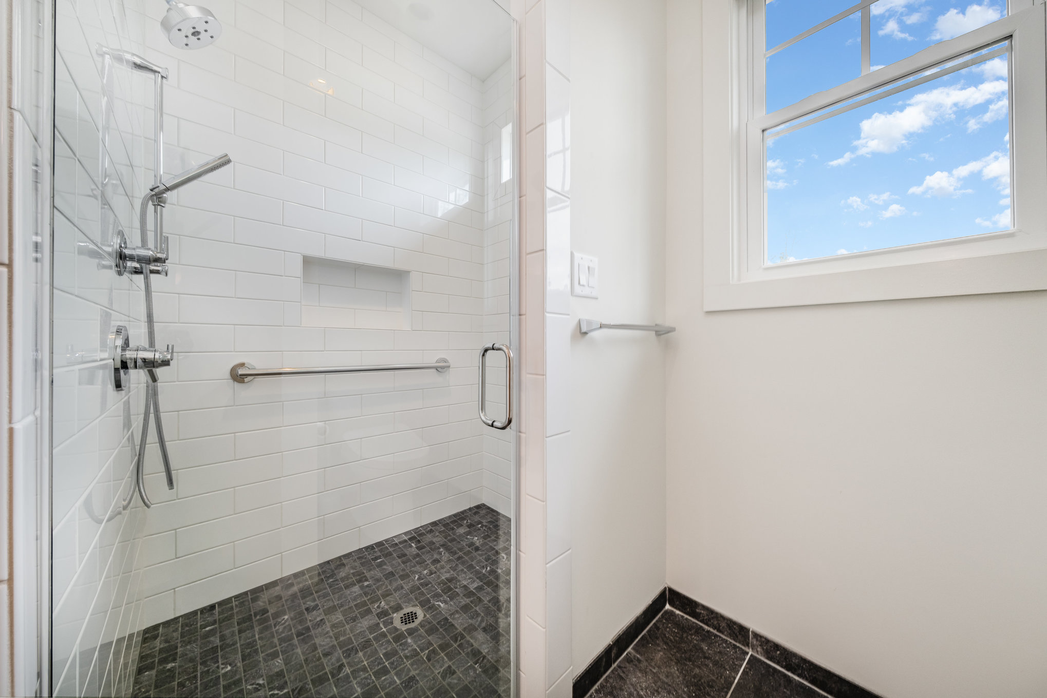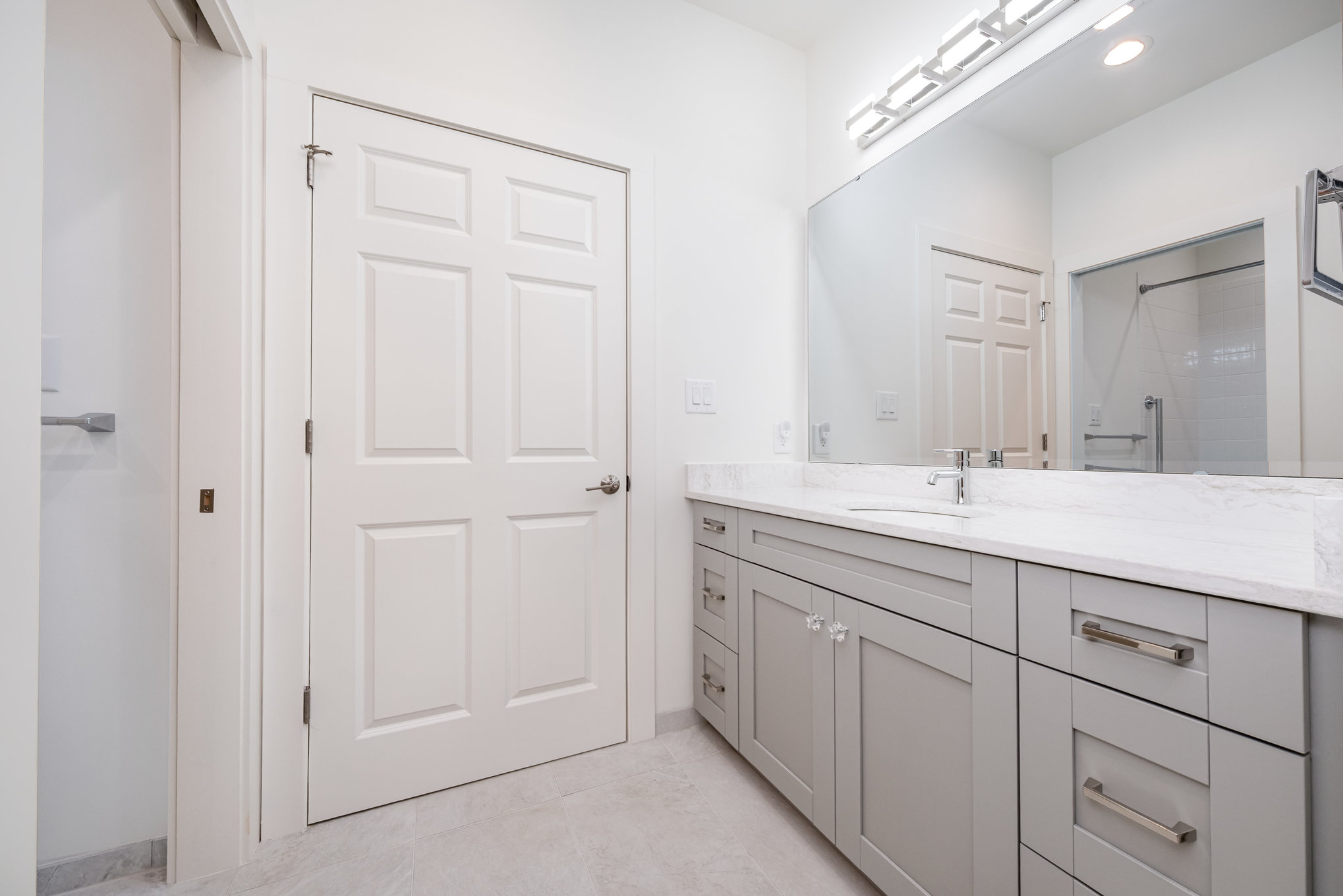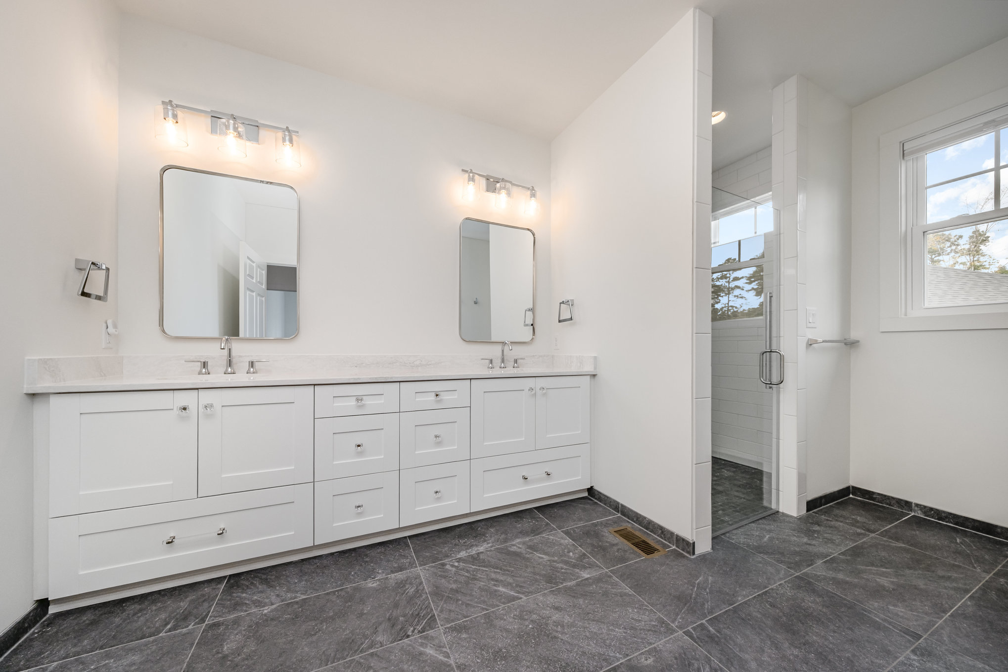 bedroom, huge bath with double vanity and tile shower, plus a walk-in closet