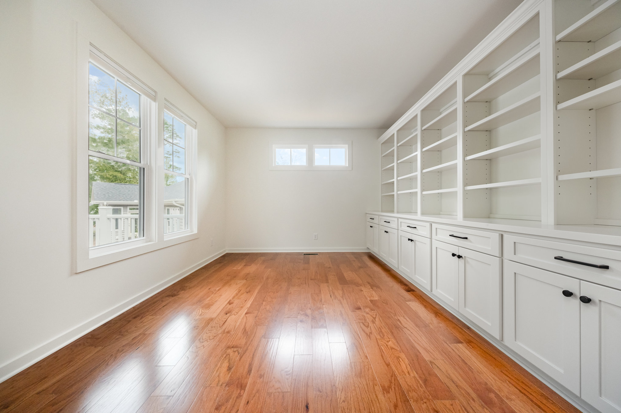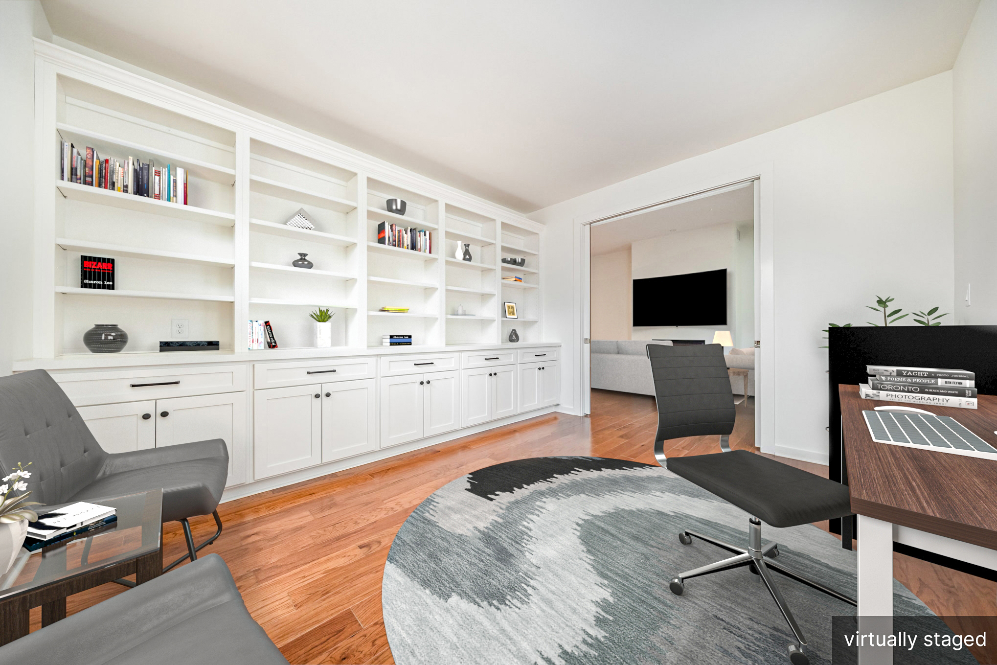 Adjacent to the primary suite is a study with built-ins and a lovely