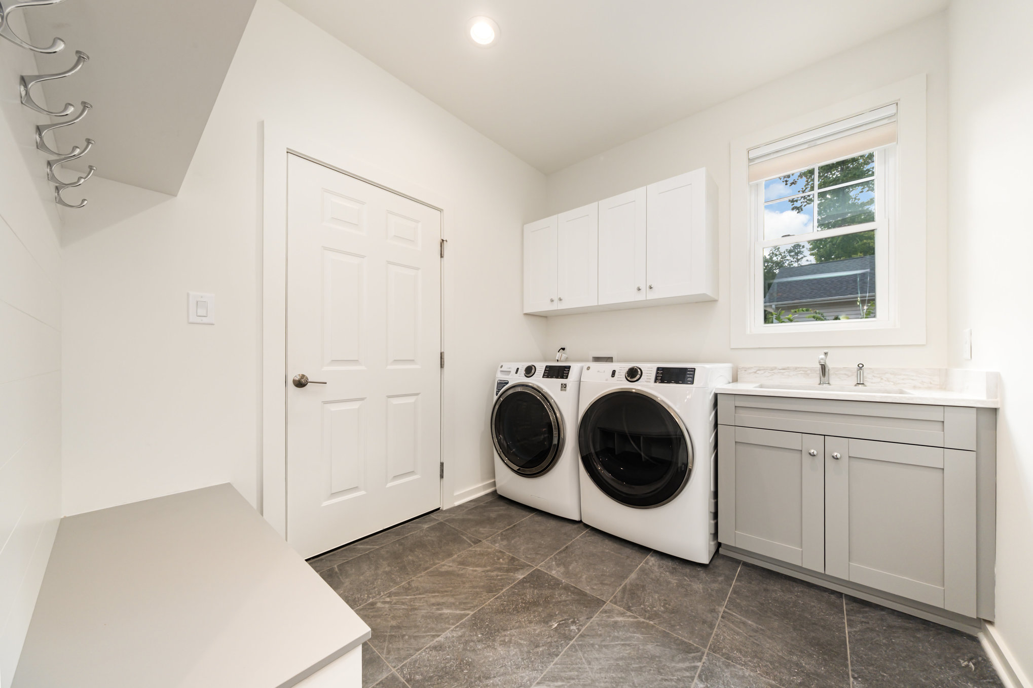 rear deck with low-maintenance flooring and railings. A laundry/mud room with built-in