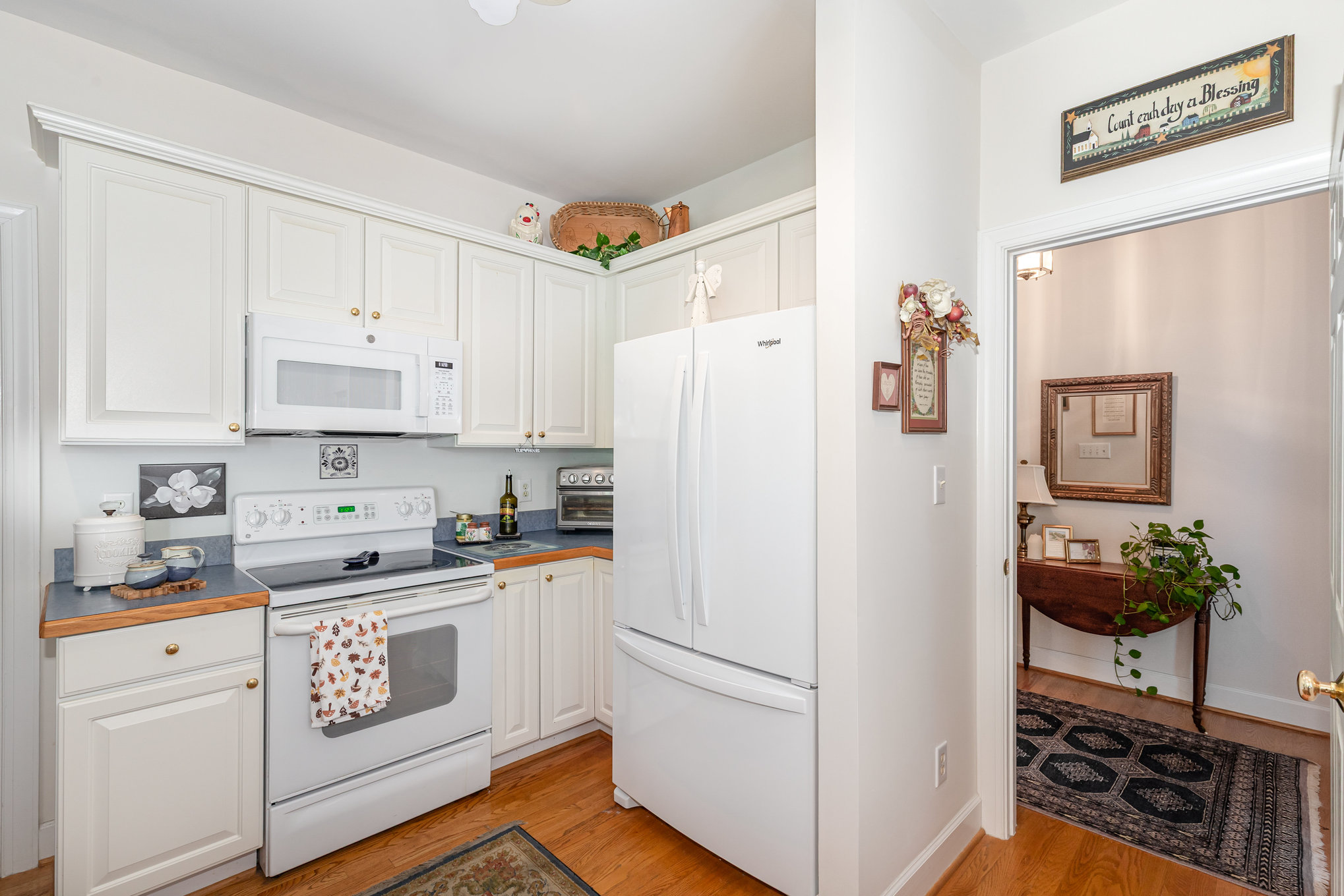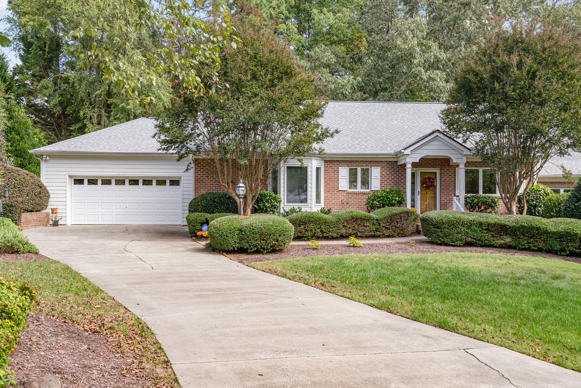 One-level townhouse with a two-car garage in a great east Chapel Hill location! Wonderful floor plan with three bedrooms and two full baths. Foyer with hardwood flooring leads to open living/dining room with fireplace and two sets of French doors that open to a private deck. Spacious kitchen with breakfast area includes a built-in desk plus great storage. Primary bedroom suite has a large walk-in closet and a private bath with tile floor and shower, double vanity, soaking tub, and skylight solar tube. Second full bath also has tile flooring and a solar tube skylight. Laundry room. Built-in shelving in the garage. New roof within last year. This location is convenient to UNC and Duke and very close to Wegmans, Trader Joes, and other popular shopping and dining destinations.