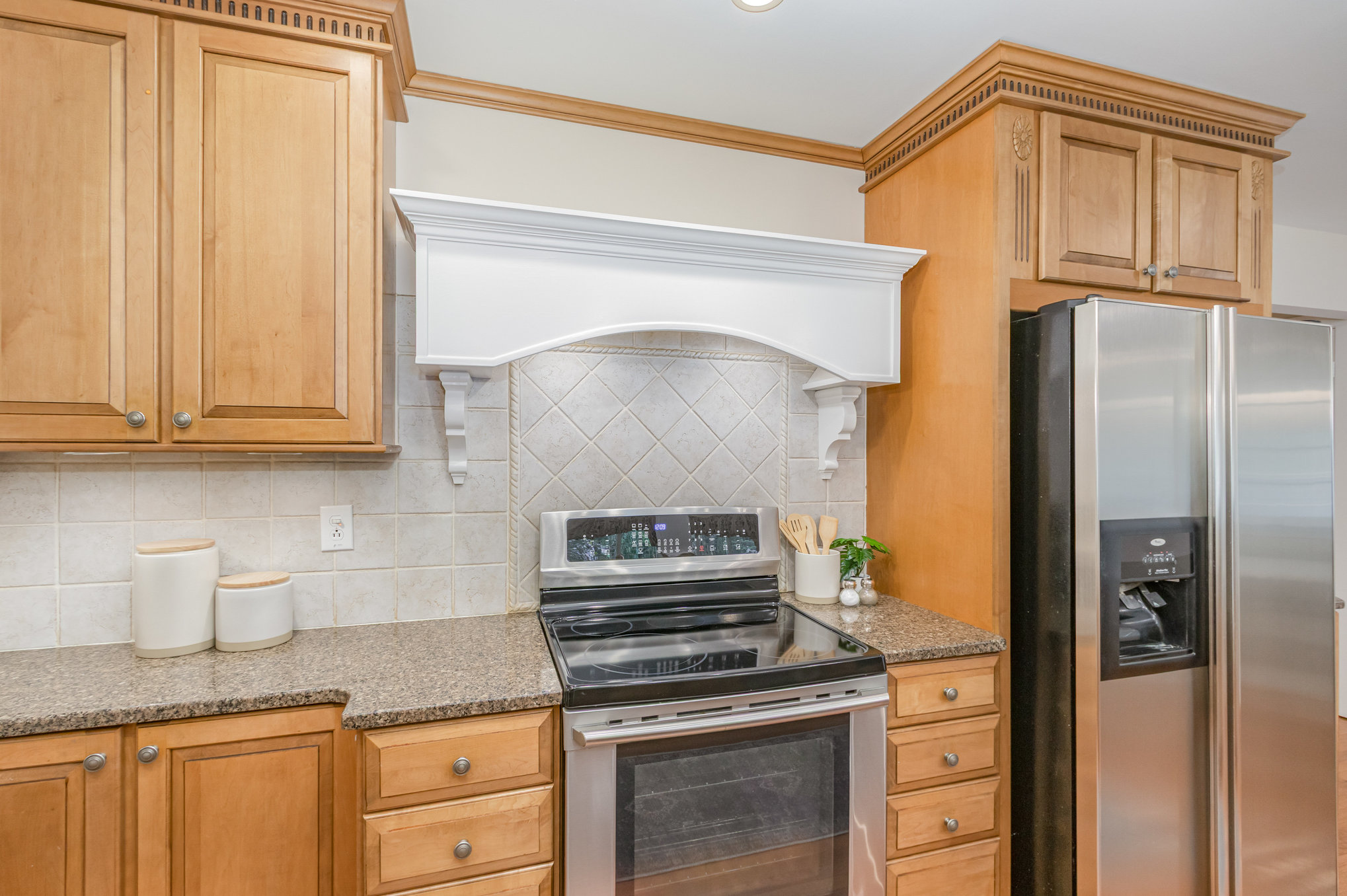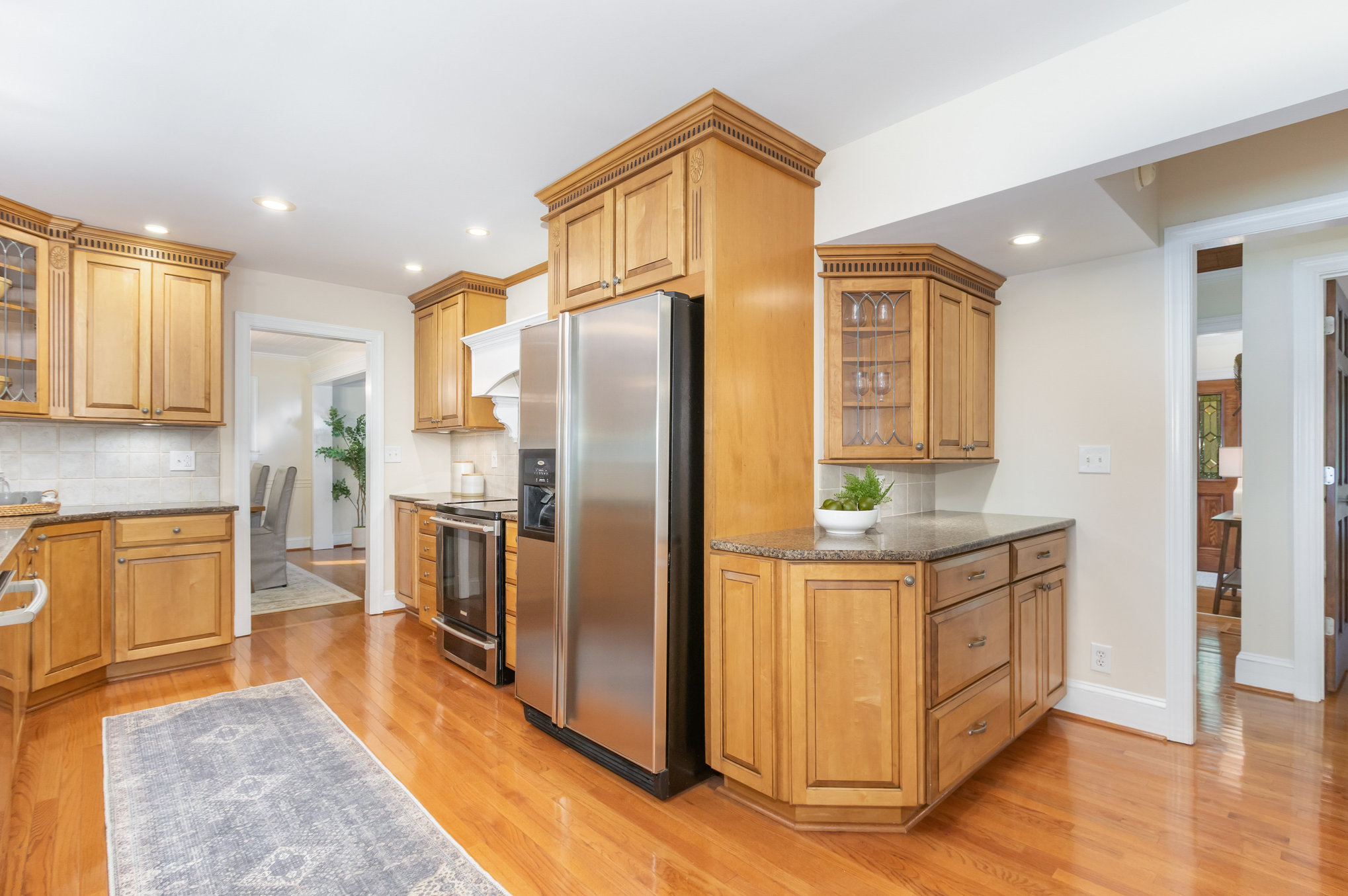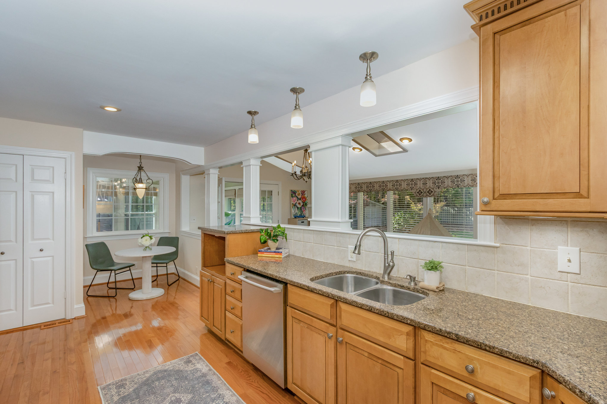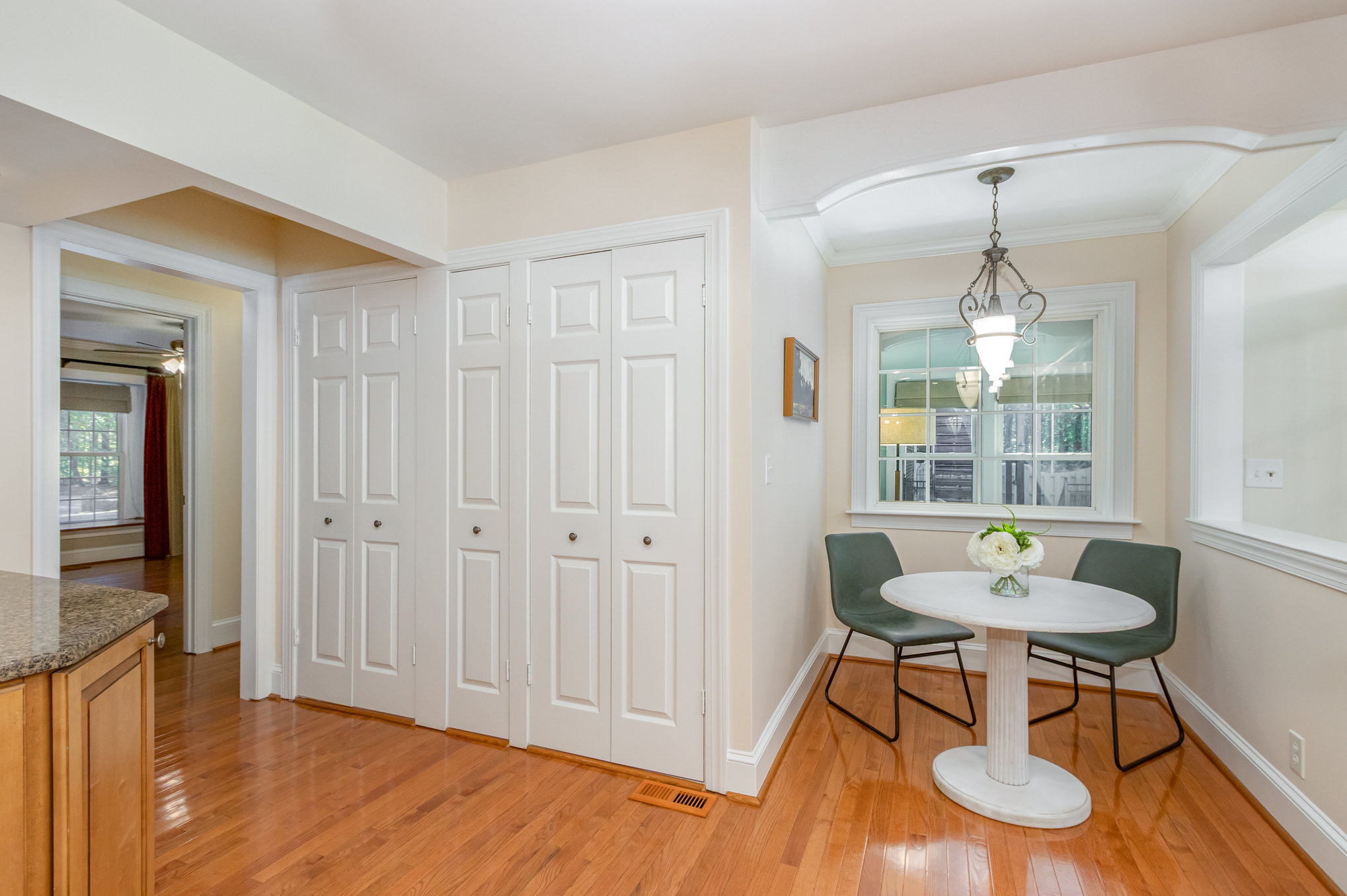 stainless appliances, dual pantries, and an alcove for a breakfast table.