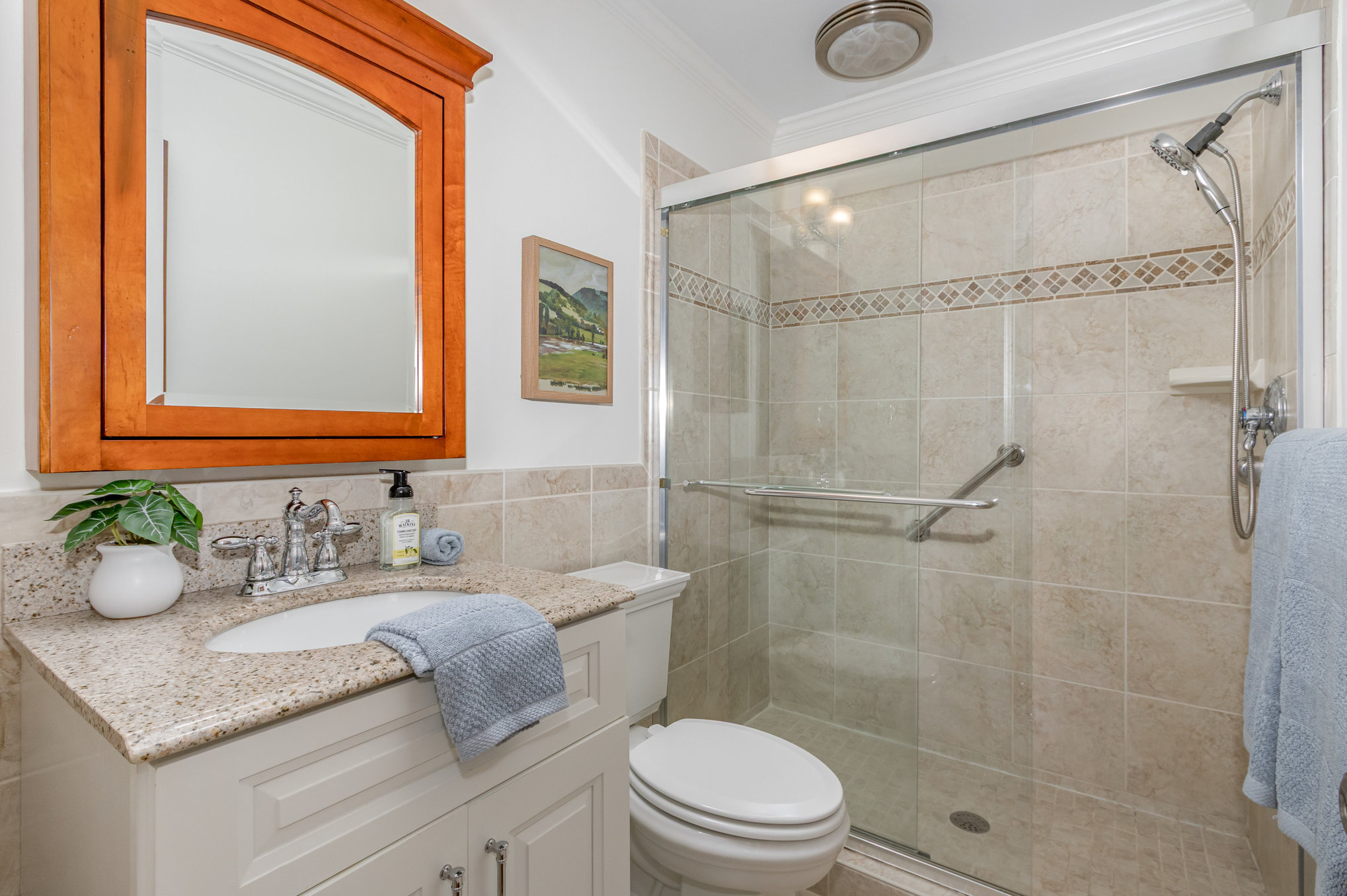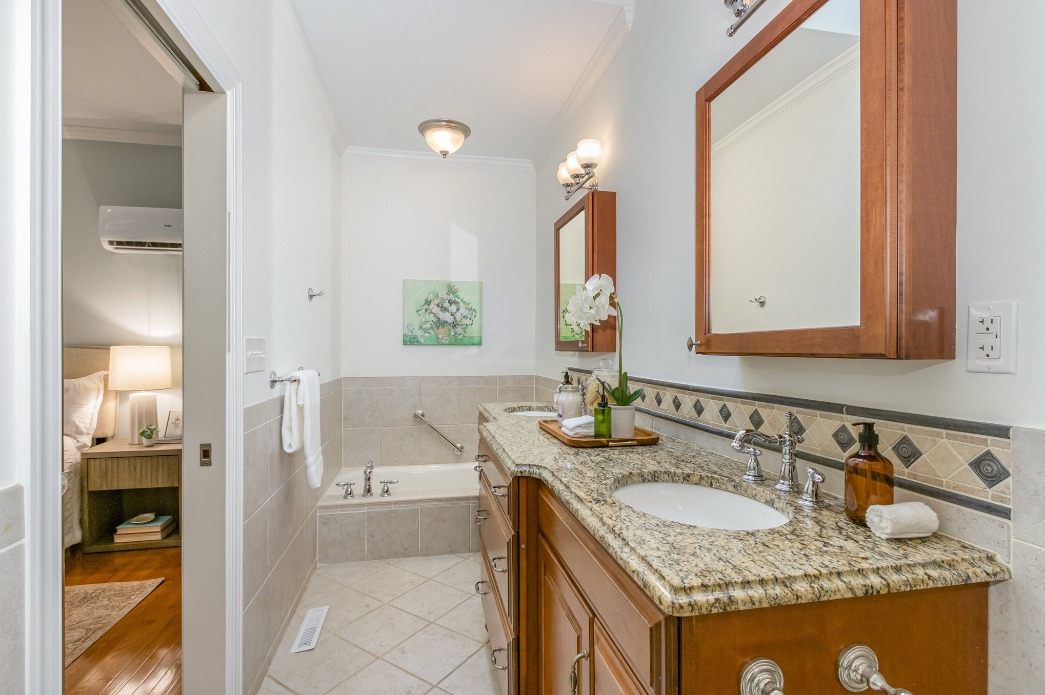 separate tub and shower. A large walk-in closet is also found in this bedroom.
