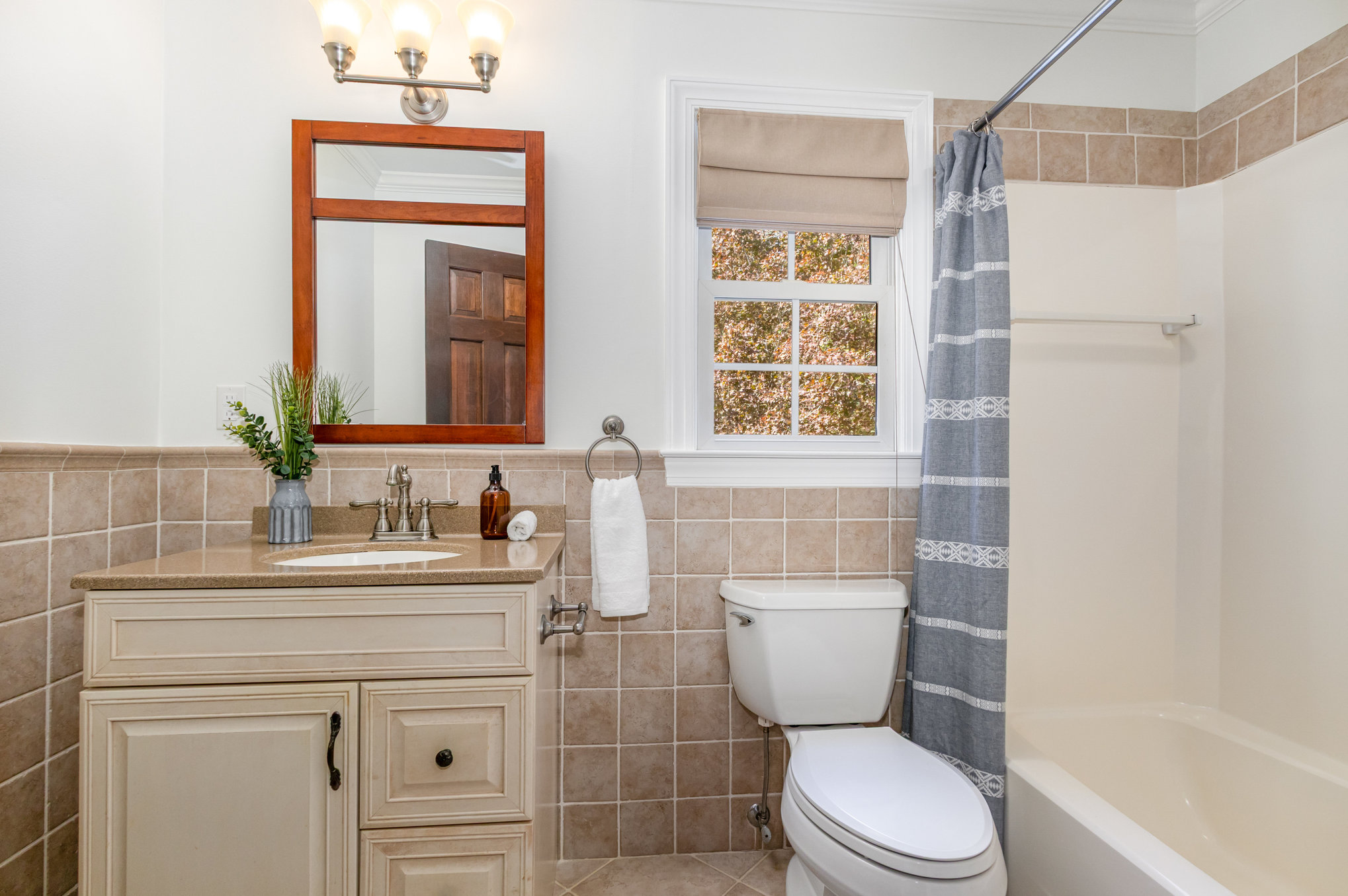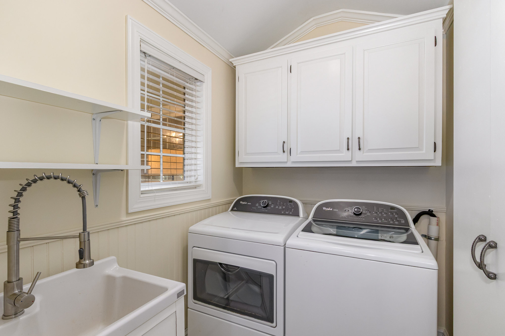 There is one additional large bedroom, with a window seat, on the main level. Upstairs