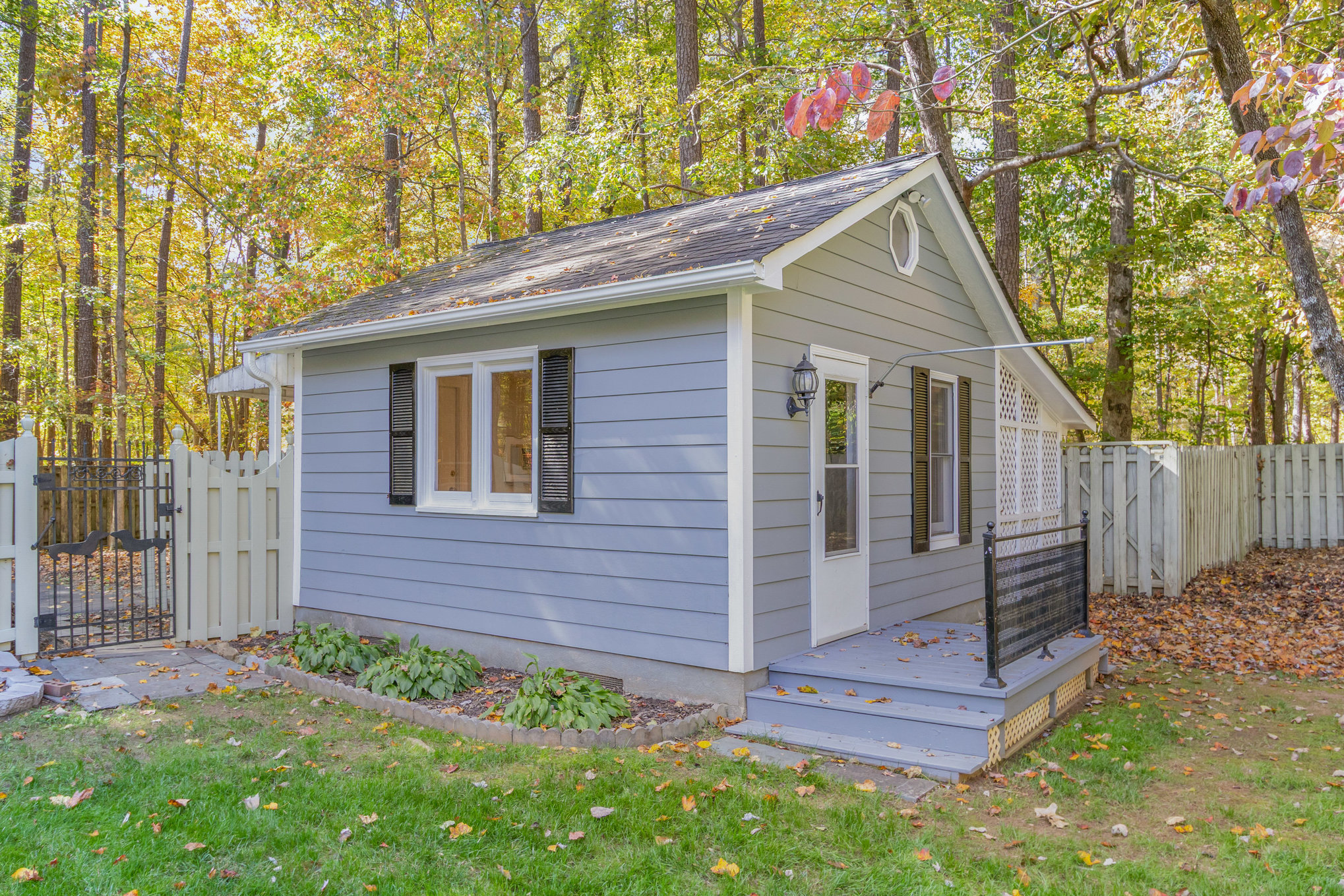 garden area, gazebo, and multiple decks. A detached workshop, with covered