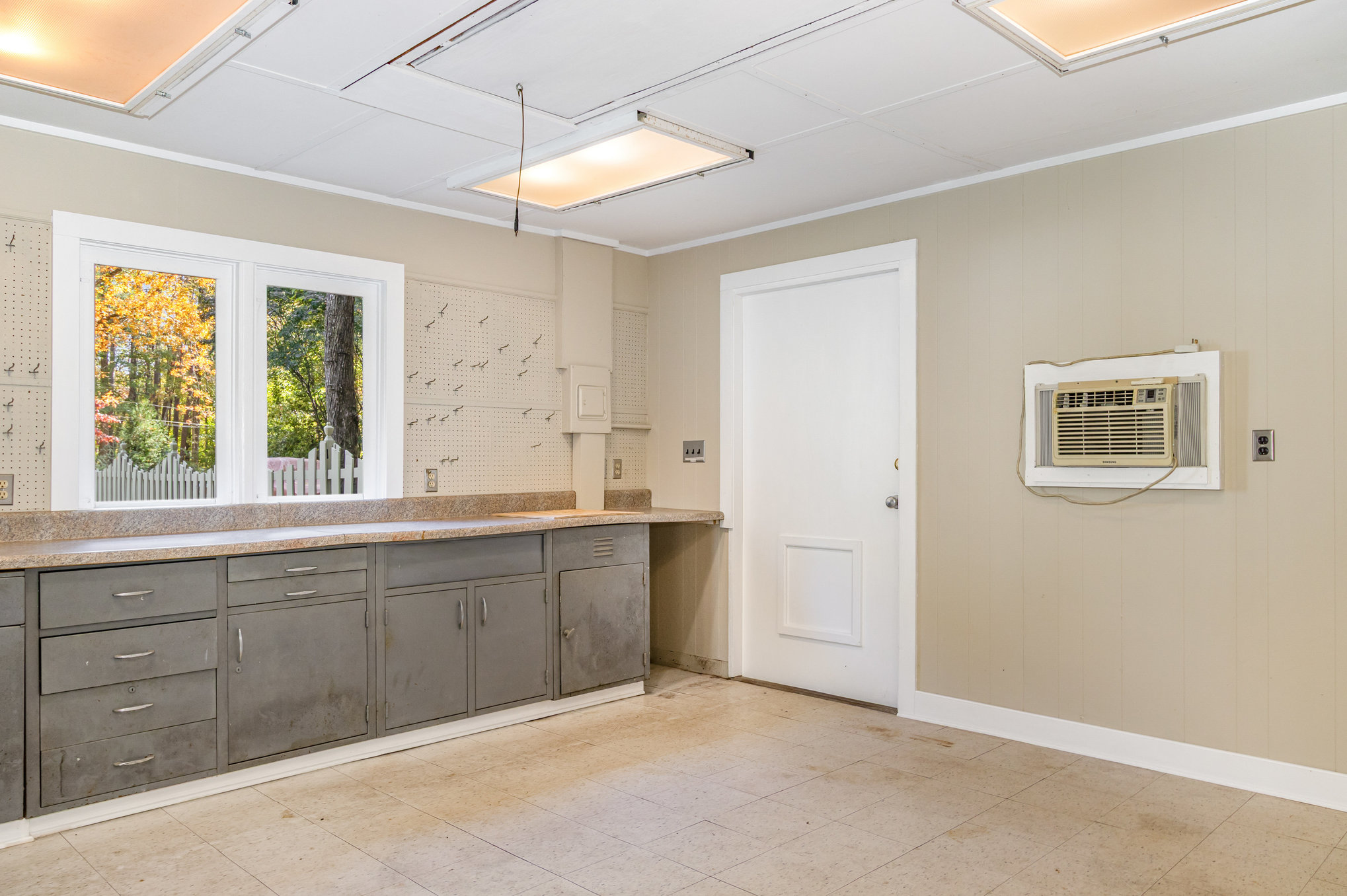 wood plank walled room perfect for a play area or office space. Additional