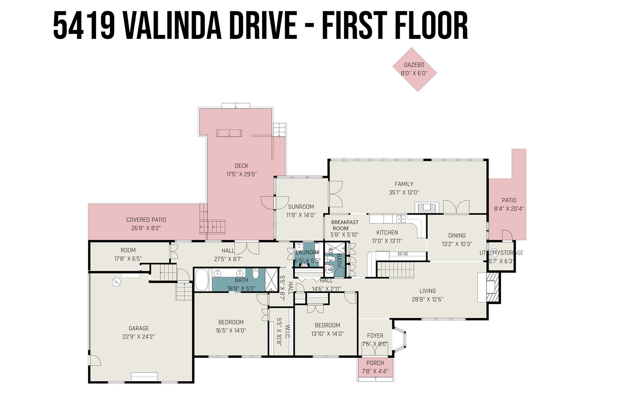 | Family Room with Fireplace | 35.1 x 12.0 |