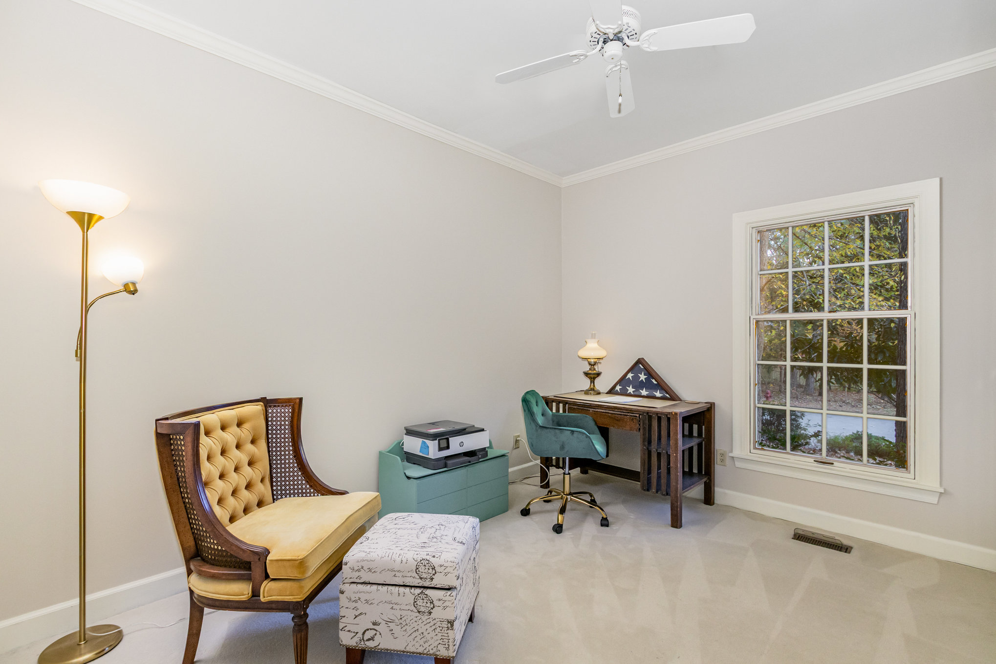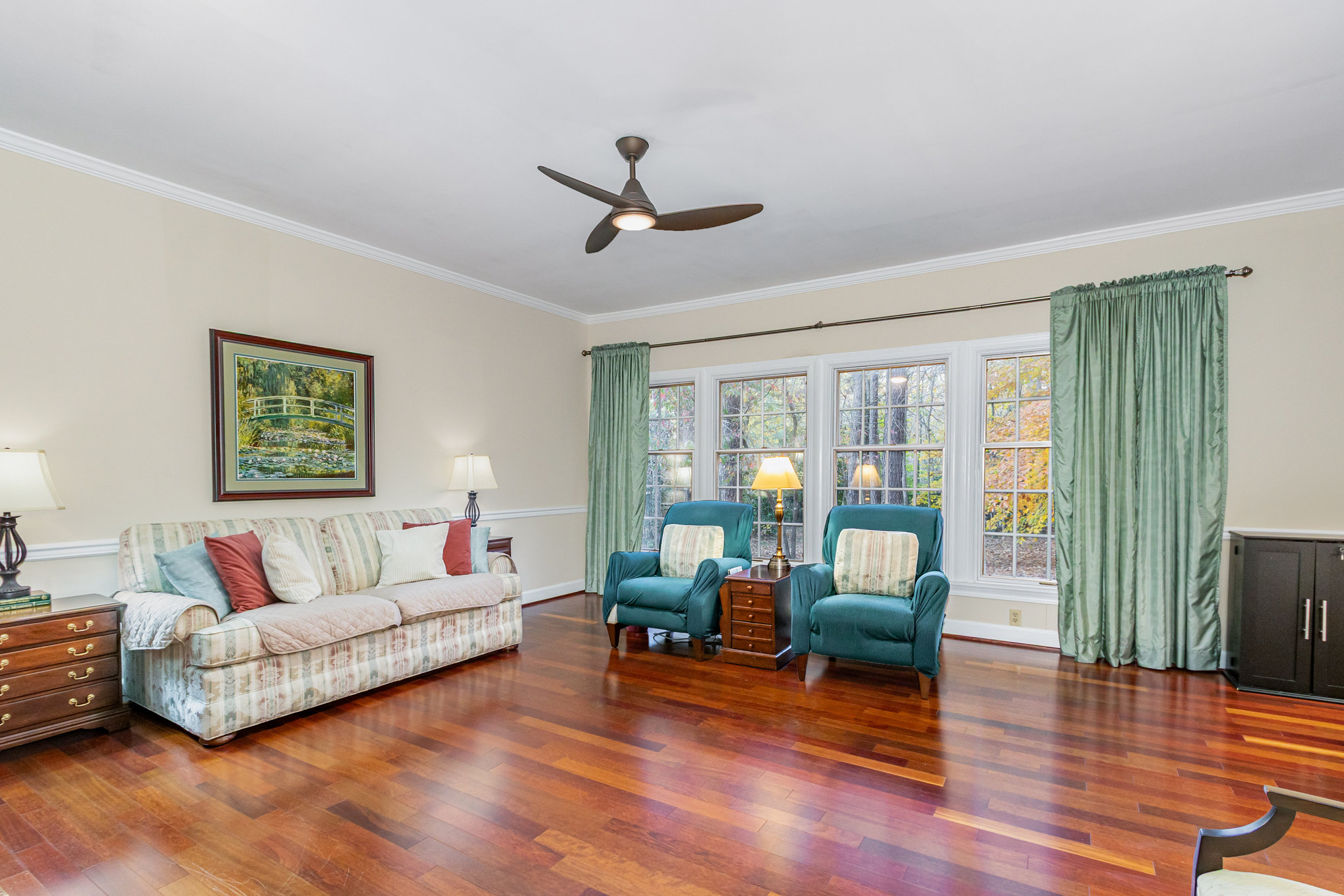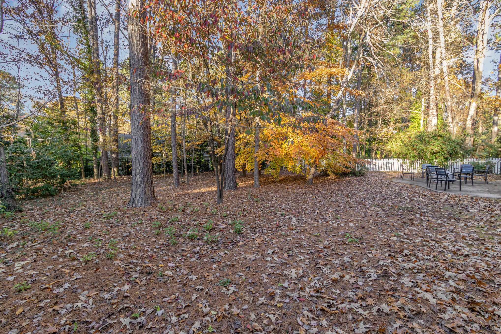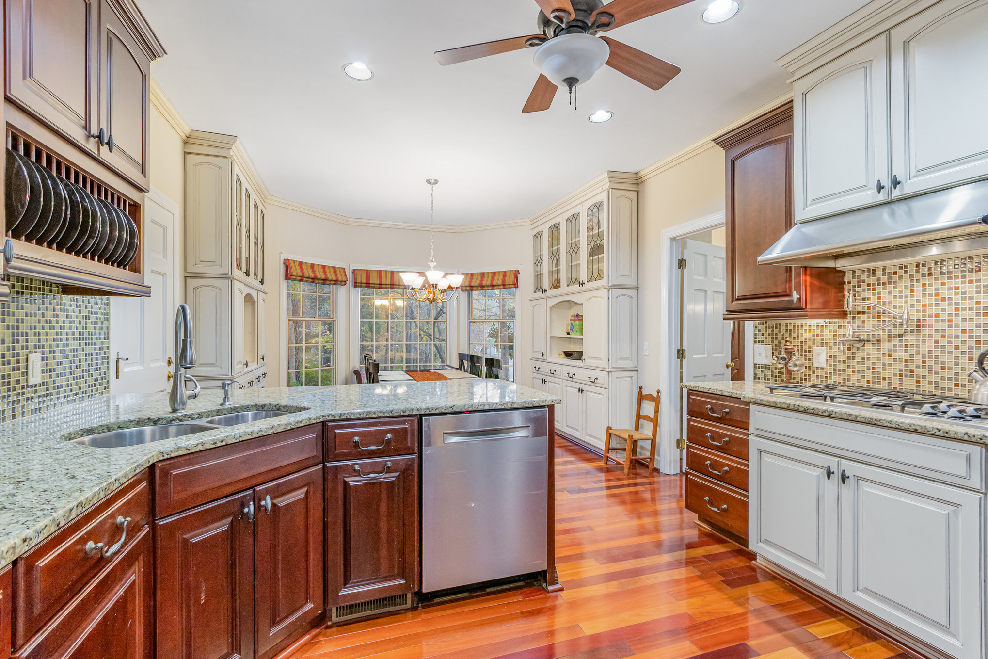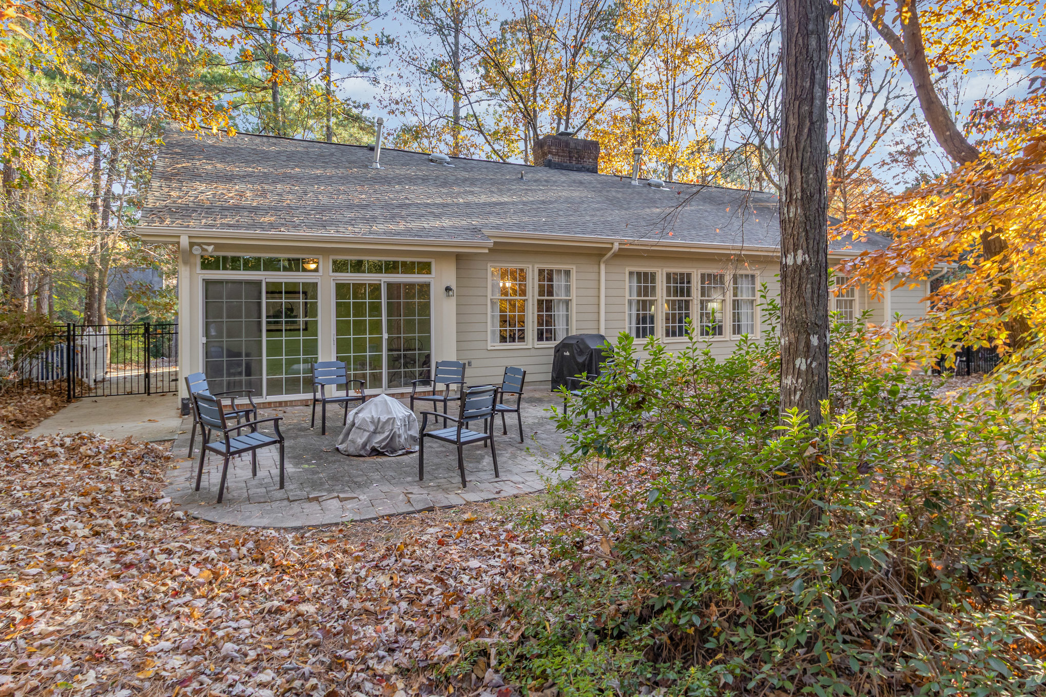 the wooded back yard. The adjoining dining room also has views of the wooded