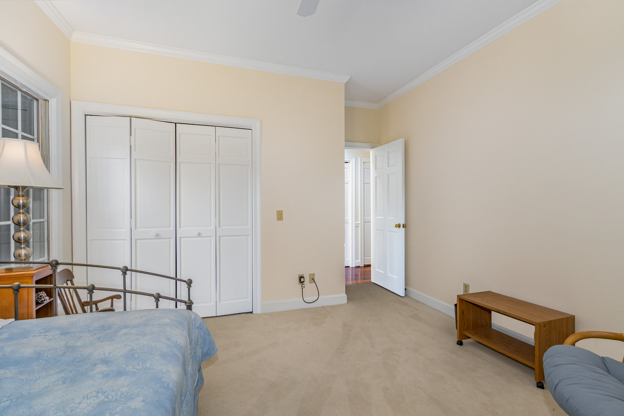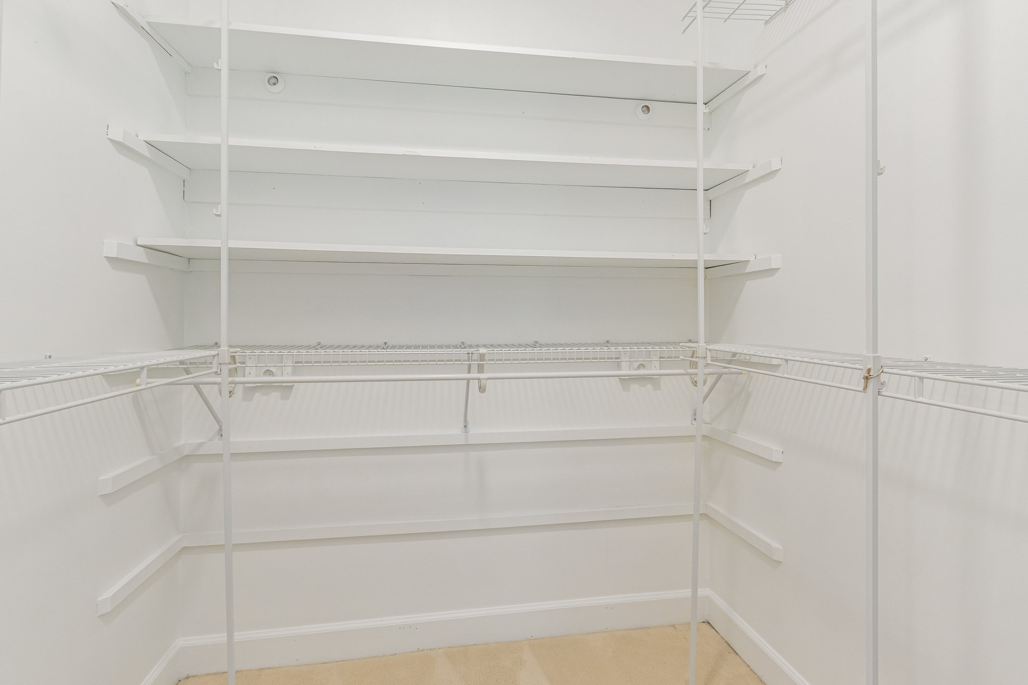 with a tile shower and a walk-in closet. One of the secondary bedrooms comes
